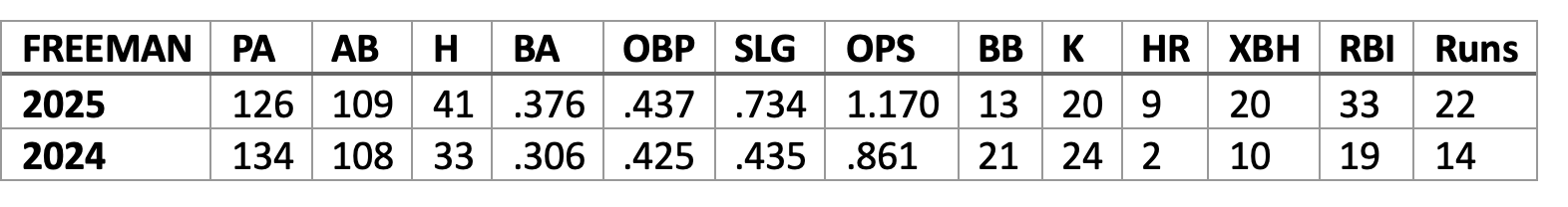 Freddie Freeman THROUGH 30 GAMES PLAYED
