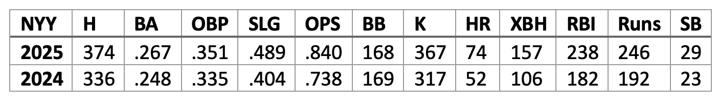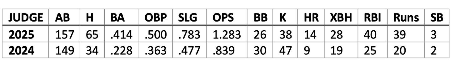 YANKEES BATTING WITH JUDGE, Juan Soto, AND Giancarlo Stanton vs. JUDGE AND COMPANY THROUGH 41 GAMES