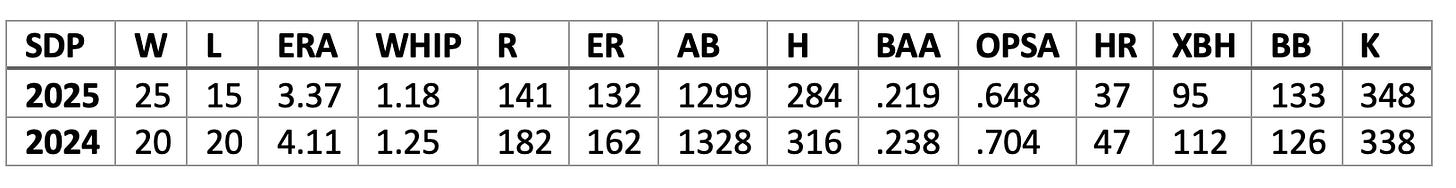 The pitching numbers tell all. You can see the ERA, but make sure you notice the walk differential.