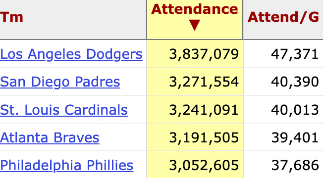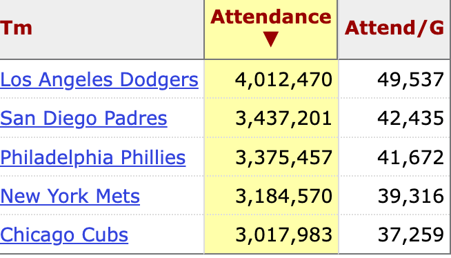 Look at the five teams with over three million in attendance in 2025: