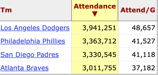 The Dodgers, Phillies, and Padres are the only three teams to appear in each of the last three years. Each of those teams has not been afraid to spend, and each has been rewarded with loyal fan bases.