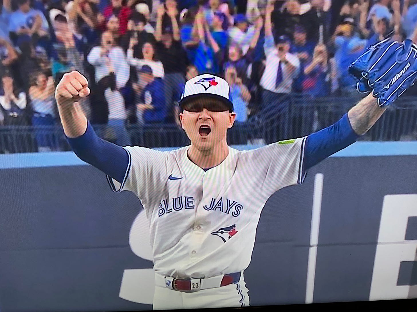 Chris Bassitt, normally a starter, came in and pitched a scoreless top of the 8th for Toronto. Muñoz worked out of a jam and pitched a scoreless 8th for Seattle, but it was TLTL (Too Little, Too Late). In the top of the 9th, the Blue Jays closer, Jeff Hoffman, struck out the side. Sarah Langs shared that only one other pitcher faced three batters and struck out all three in the final inning of a Game 7. And that would be Calvin Schiraldi, when he had an 8-1 lead in the 1986 ALCS. He didn’t do that in Game 6 of the 1986 World Series, and Bill Buckner took the blame.
