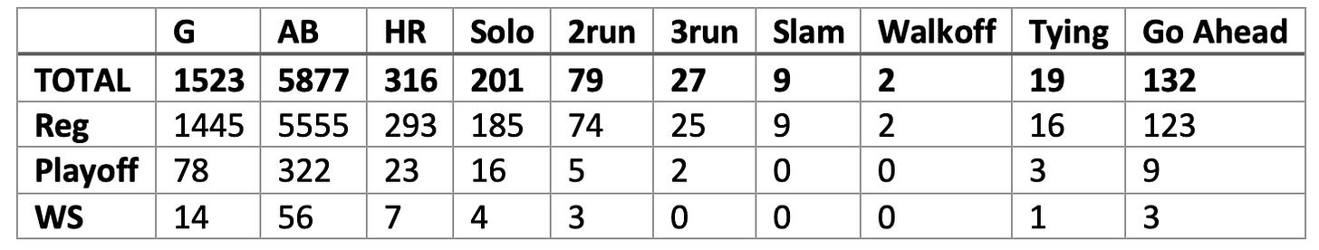 Playoff totals include the Wild Card, LDS, LCS, and World Series.